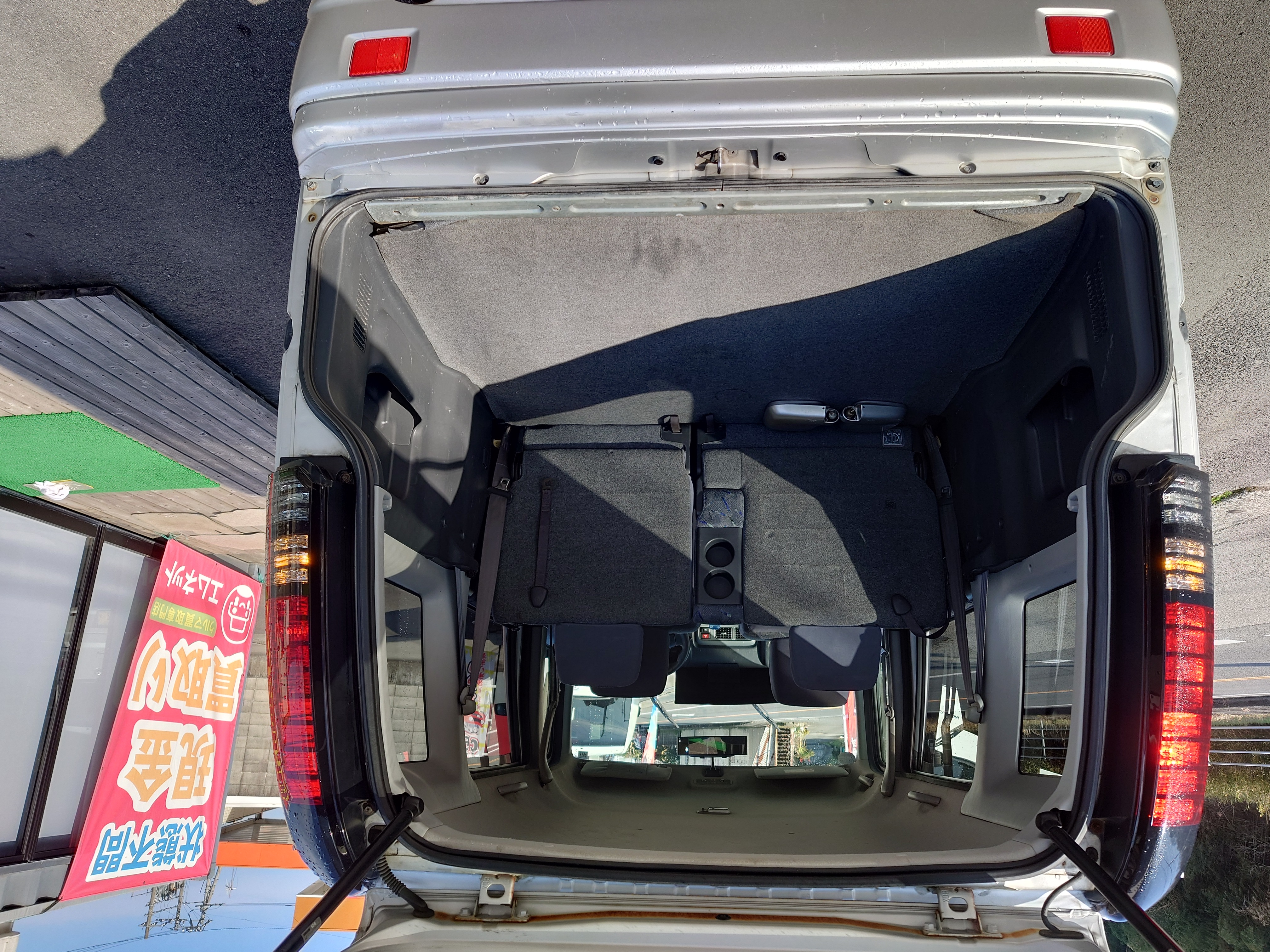 - 後席を倒すとほぼ完全フラット(タイヤハウスが室内にほとんど食い込んでない)